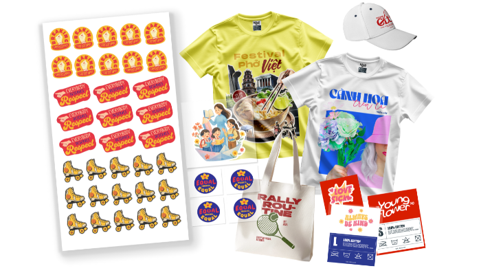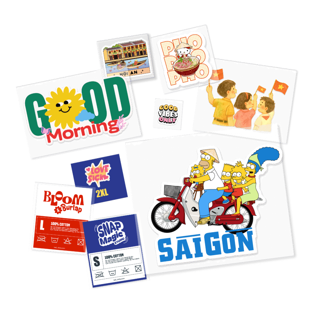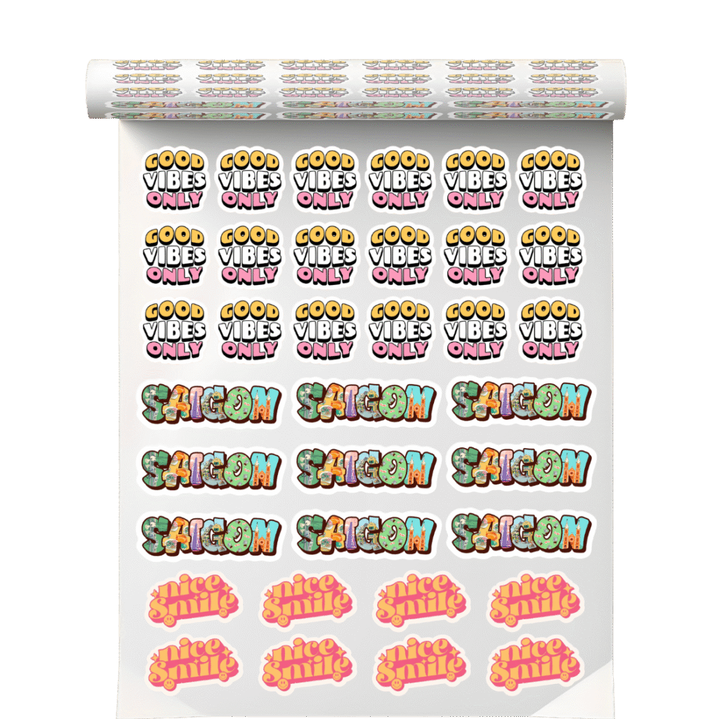 Chúng tôi nhận in hầu hết các sản phẩm phục vụ thương hiệu gồm: Sticker, tem nhãn, tem dán sản phẩm PET chuyển nhiệt (in áo) Thẻ treo, card cảm ơn, namecard Túi, bao bì đóng gói → Tất cả trong một nơi, phù hợp shop – brand – xưởng.