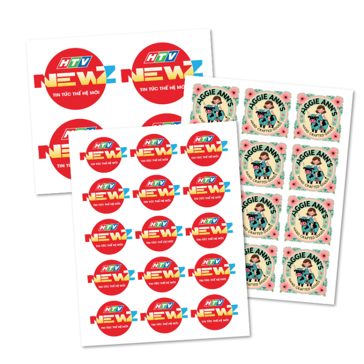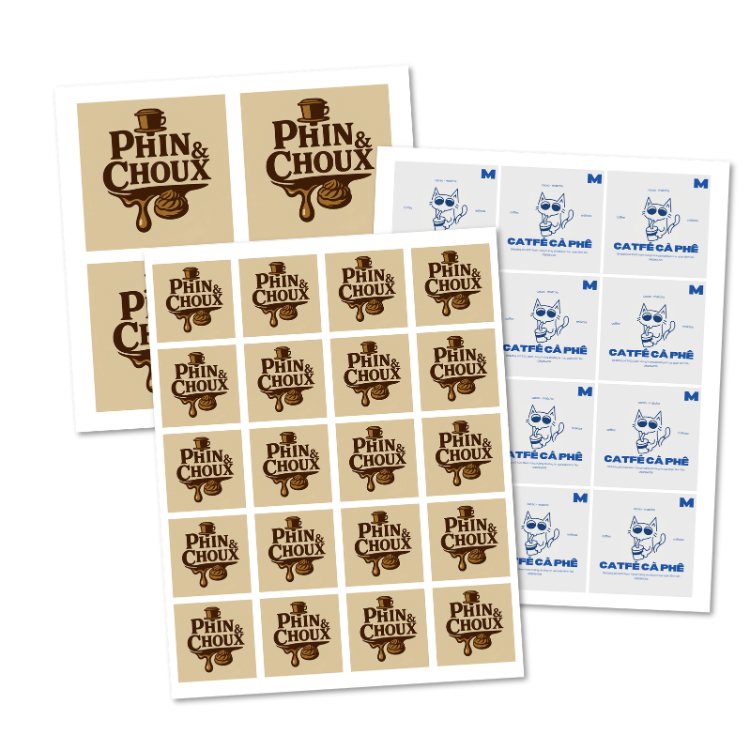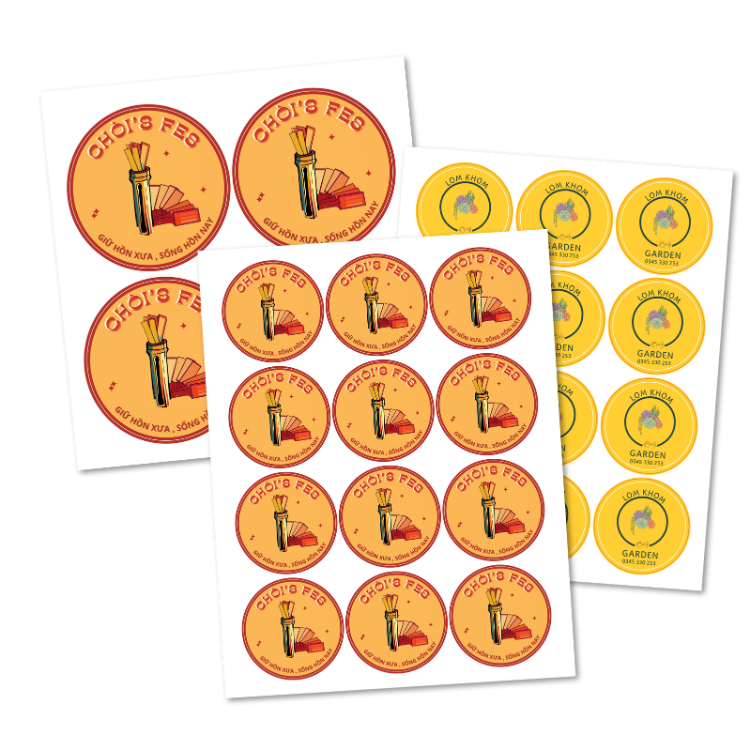 Tem logo dán sản phẩm, đúng màu brand. Phù hợp seal đóng gói, nhận diện thương hiệu, quà tặng.